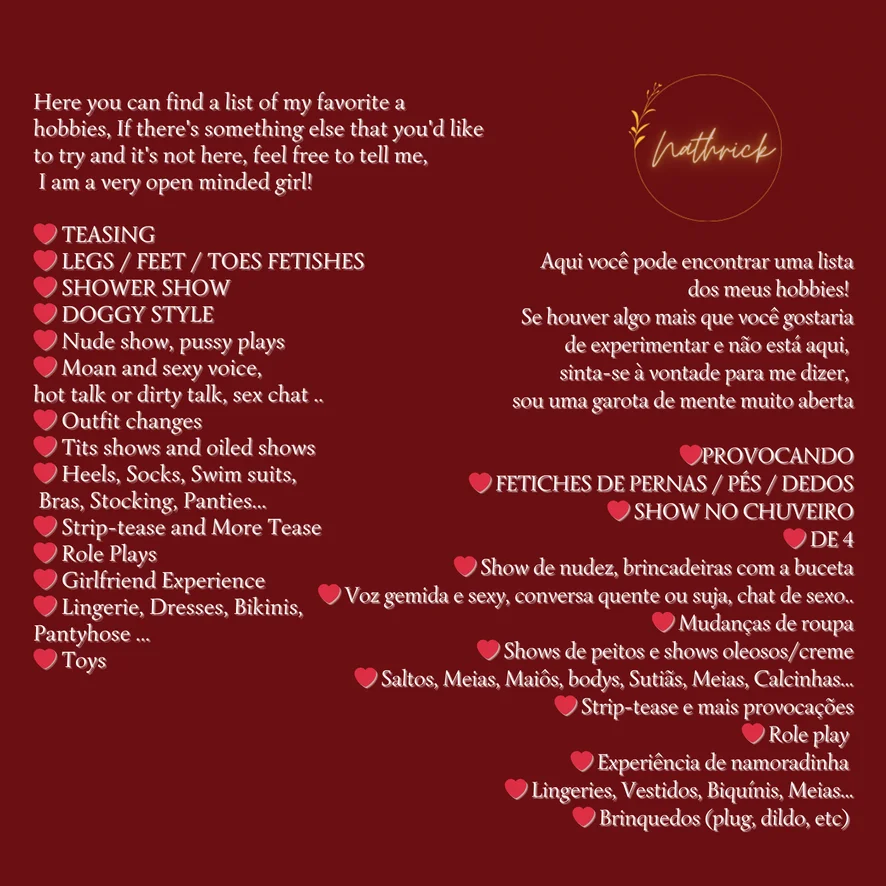 Tágítás, Erotikus tánc, Kutyapóz, Cici baszós, Szopás, Szexjátékok, Dildó vagy vibrátor, Spriccelés, Villantás, Élvezés, Jóga, Mocskos beszéd, Maszturbálás, Ujjazás, Twerk, Olajozás, Sztriptíz, Félmeztelen, Zuhany, Főzés, Fenékből szájba, Lábfétis, Mély torok, Kiverési utasítások, Orgazmus, Dupla behatolás, Fenekelés